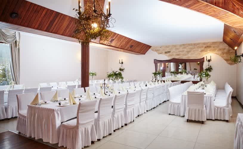 Ze względu na malownicze krajobrazy i starannie zaprojektowane wnętrza Gościniec pod Strzechą to wymarzone miejsce do zorganizowania rodzinnych przyjęć i świętowania ważnych uroczystości. Nasze sale weselne w Suwałkach wyróżniają się przestronnością i drewnianym wykończeniem, dzięki czemu bardzo dobrze wpiszą się w klimat przyjęć boho, rustykalnych i glamour. Każda sala weselna w Suwałkach w Gościńcu może być przyozdobiona zgodnie z Państwa gustem i wizją. W organizacji uroczystości chętnie pomogą nasi koordynatorzy. Zachęcamy do zapoznania się z przygotowanymi dla Państwa propozycjami!